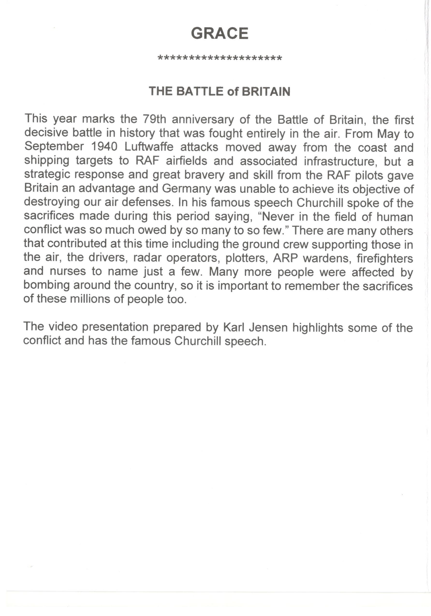September 2019, Battle of Britain